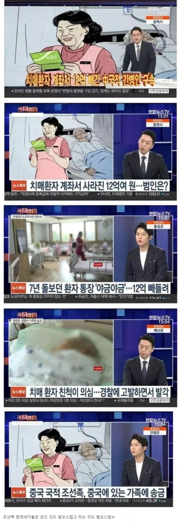 치매환자 계좌서 12억 빼간 조선족 간병인 작성자 정보 최고관리자 작성 작성일 2022.08.07 11:27 컨텐츠 정보 목록 본문 치매환자 계좌서 12억 빼간 조선족 간병인 관련자료 이전 폭우로 인한 현재 7호선 상황.JPG 작성일 2022.08.09 09:48 다음 후두암 환자를 알아본 소방공무원 작성일 2022.08.07 11:26 댓글 0 등록된 댓글이 없습니다. 로그인한 회원만 댓글 등록이 가능합니다. 목록