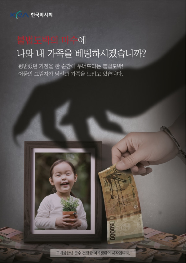 한국마사회는 불법 도박의 심각성과 폐해를 관계자에게 전파하고 이를 사전에 근절하기 위해 불법 도박 예방 포스터 등 홍보자료를 배포하며 경마행정시스템 홈페이지에도 팝업 형태로 노출될 예정이다.
